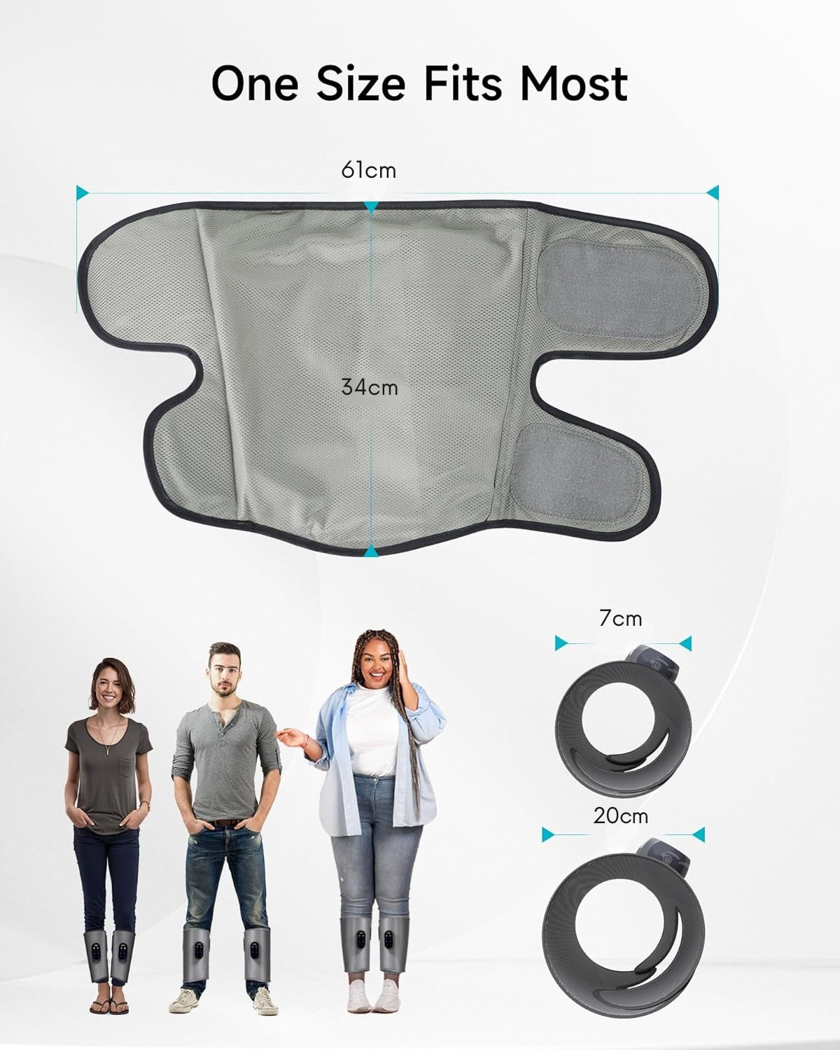 - RELAX | RECOVER | REVIVE: Unwind after a long day, alleviate muscle soreness, and rejuvenate your body with our cordless leg massager with heat and compression. Wireless leg compression massager for circulation not only is designed to help you relax, recover from strenuous activities, and revive your energy levels, but it will also help to relieve muscle pain, swollen legs and other symptoms.
